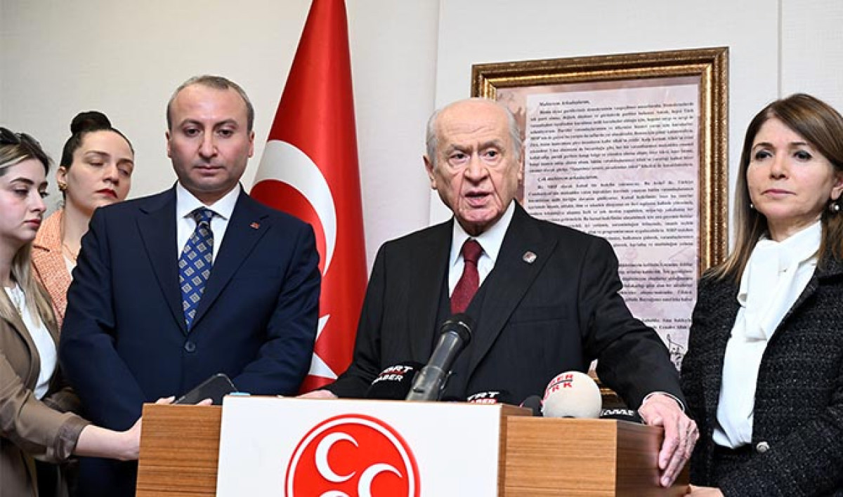 Bahçeli, basın mensuplarının ABD-İsrail ve İran arasında süren savaşın seyrine ilişkin sorusu üzerine, “Türkiye Cumhuriyeti Devleti bölgedeki gelişmeleri çok yakından takip ediyor. Bugüne kadar uygulamış olduğu değerlendirmeler ışığında çevre ülkeler de dahil olmak üzere dünya genelinde ülkeler arası çatışmaya fırsat vermeyecek bir barış ve huzur ortamının gerçekleşmesi için çaba sarf ediliyor. Sayın Cumhurbaşkanımız ve Dışişleri Bakanımız başta olmak üzere bugünkü siyasi iktidar üstün bir gayret göstermek suretiyle barışın sağlanması, silahların susması ve huzura kavuşulması açısından önemli temaslarda bulunuyorlar. Şu ana kadar yaptıkları değerlendirmeler ışığında çevrede önemli şiddet olayları, büyük çatışmalar olmakla beraber Türkiye’yi birlik ve beraberlik içerisinde savaşın dışında tutan bir anlayışla muhafaza etmişlerdir. MHP olarak Cumhur İttifakı kapsamı içerisinde bugünkü değerli yönetime, Sayın Cumhurbaşkanımız ve Dışişleri Bakanımıza başarılar diliyorum. Temennimiz ise en kısa zamanda silahların susmasıdır. Bu silahları sustururken ‘Süper güç’ olarak kendilerini niteleyen; fakat iradeleri dışında her ülkenin milli iradesiyle çelişecek tarzda rejim değişikliklerine heves eden insanları; insanlığa, demokrasiye ve ülkelerin varlığına saygı duymaya davet ediyorum. Onun için her şeyden evvel bir rejim değişikliği olacaksa eğer bu değişiklik İsrail’den başlamalıdır. İsrail’in karanlık emelleri son bulmalı, bölgenin ve dünyanın tekrardan huzura kavuşması için gayret göstermelerini istiyoruz. Bunun da en büyük sorumlusu, bugünkü şartlar içerisinde ABD’ye düşmektedir. ABD’nin bugünkü yönetimi çok konuşuyor, tartışıyor, farklı şeyler söylüyor. Onların bu farklı söylemlerini Türk medyası da sanki her gün ‘yarın bir şeyler olacakmış’ gibi topluma takdime gayret gösteriyor. Bu da toplumun barışa olan güvenini sarsacak bir hataya düşmesine sebebiyet veriyor. Onun için siz değerli medya mensubu arkadaşlarımız başta olmak üzere medyanın yöneticilerine gerçekler üzerinde tartışma yaparak en iyi şekilde görev üstlenmeleri, yoksa bir devletin başkanının her gün ne yaptığını tekraren ifade edecek tarzda bir hataya düşmemelerini de temenni ediyorum” diye konuştu.