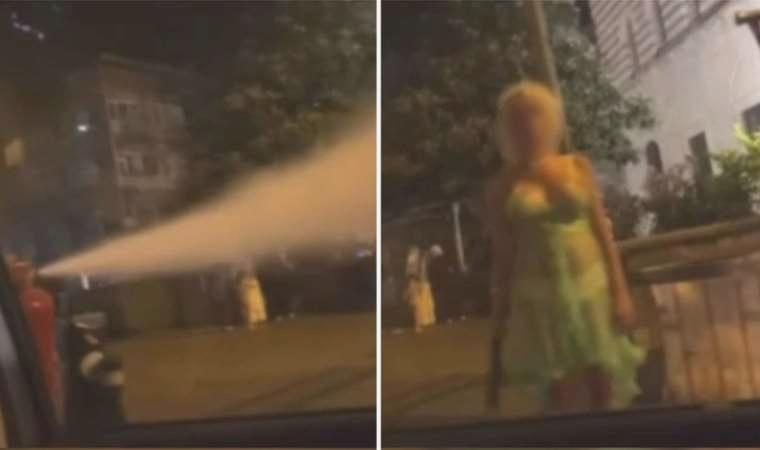Sosyal medya üzerinde bir arabadan yolda yürüyen bayanların üzerine yangın tüpü sıkılan imgelerin yayılması üzerine soruşturma açıldı.