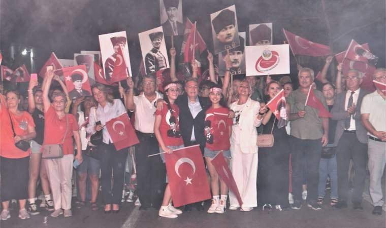 Mustafa Kemal Caddesi boyunca devam eden yürüyüş Bornova Büyükpark içinde son buldu. Geçiş güzergahının Ayyıldızlı bayrağımızın renklerine boyandığı gecede Bornovalılar, Bornova Belediyesi’nin dağıttığı bayraklarla Bornova Belediye Bandosu’nun çaldığı zafer müziklerini ve marşları daima bir ağızdan söyledi. Kimi Bornovalıların meskenlerinin balkonlarından eşlik ettiği coşkuya, Bornova Belediye Lideri Dr. Mustafa İduğ, Eşi Ufuk İduğ ile birlikte katılırken 25, 26 ve 27. Devir İzmir Milletvekili Kamil Okyay Sındır, belediye bürokratları ve meclis üyeleri de Bornovalıları yalnız bırakmadı. En önde ellerinde bayraklarla vatandaşları selamladı.