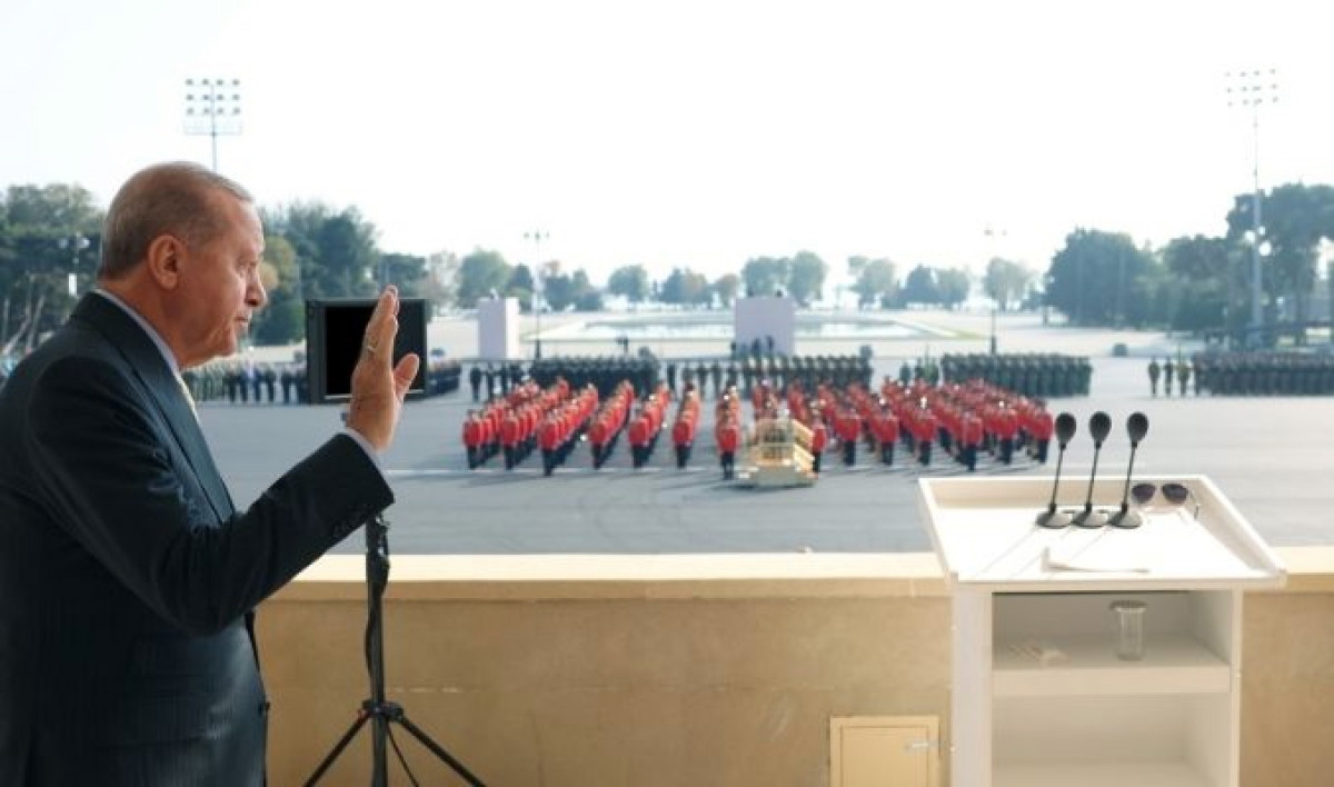 Erdoğan, Azadlık Meydanı’nda, Azerbaycan ordusunun 2. Karabağ Savaşı’nda elde ettiği tarihi zaferin 5. yıl dönümü dolayısıyla düzenlenen Zafer Günü Töreni’nde konuştu.