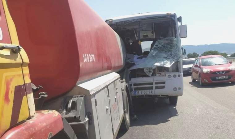 Edinilen bilgiye nazaran, Soma istikametine seyir halinde olan ve maden personellerini taşıyan R.K. yönetimindeki 35 S 50124 plakalı minibüs, birebir tarafta seyir halinde olan A.Ç. yönetimindeki 10 D 3670 plakalı akaryakıt tankerine arttan çarptı. Meydana gelen kazayı görenlerin ihbarı üzerine bölgeye jandarma ve sıhhat grupları sevk edildi.
