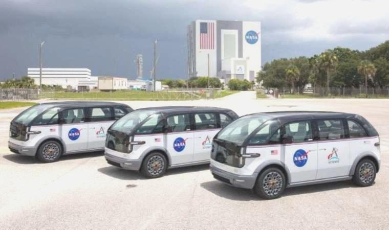 Bu özel araçları üretme ihalesini kazanan Kaliforniya merkezli Canoo Technologies, büsbütün elektrikli, mürettebat taşıyıcı üç “astrovan”ı NASA’nın Florida’daki Kennedy Uzay Merkezi’ne salı günü teslim etti.