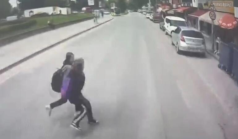 Öte yandan kaza, otobüsün kamerasına yansıdı. İmgelerde otobüsün yolda seyir halindeyken, bir minibüsün gerisinden koşarak yola çıkan öğrencilere çarptığı görüldü.